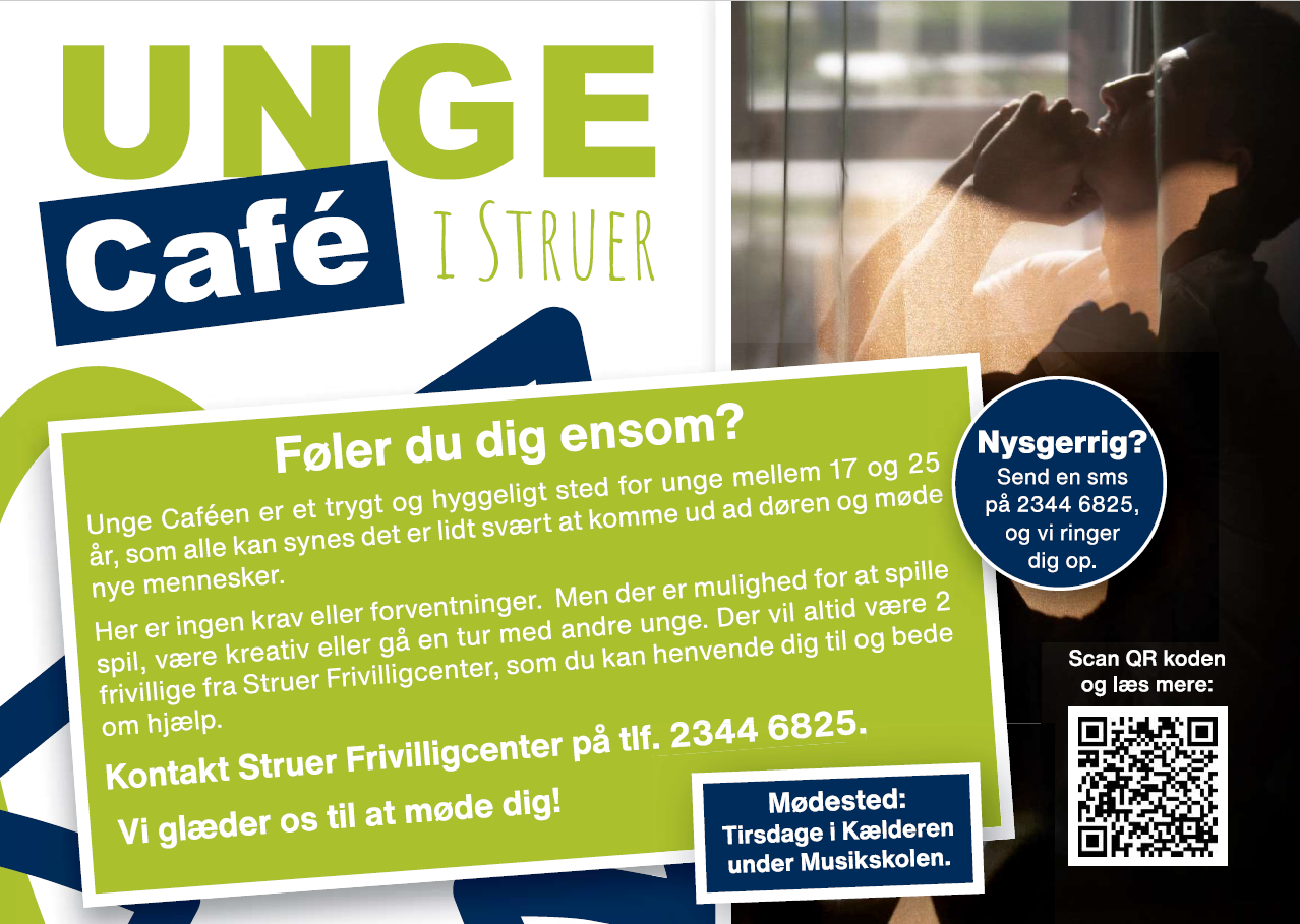 Unge caféen er et trygt og hyggeligt sted for unge mellem 17 og 25 år, hvor du kan møde nye venner og være en del af et fællesskab.